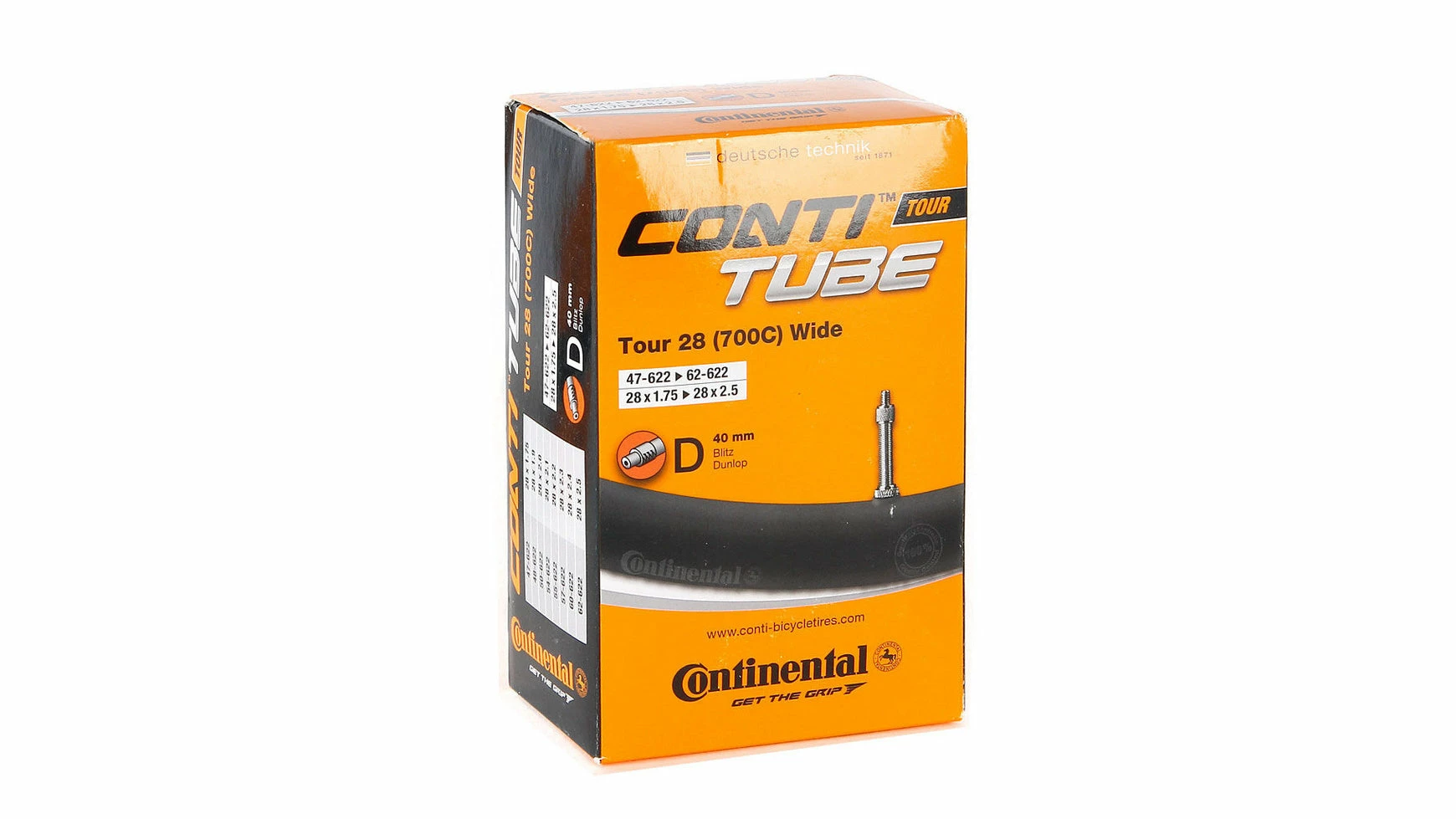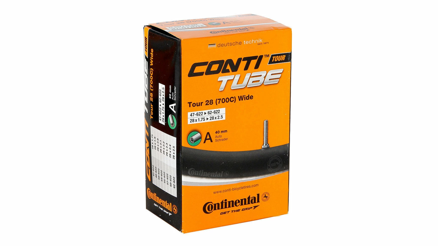 Das neue ContiTube-Schlauchprogramm macht es Ihnen noch einfacher, den optimalen Schlauch für Ihre Ansprüche zu finden. Das besonders übersichtliche und anwenderfreundliche Schlauchsystem wurde in Größe, Ausführung, Ventiltyp und -länge perfekt an die jeweiligen Reifendimensionen und Einsatzzwecke angepasst. Durch unterschiedliche Schlauchtypen können Sie übrigens mit geringem Aufwand die Fahreigenschaften Ihres Rades beeinlussen: Der in allen Dimensionen erhältliche Standard-Schlauch bietet den besten Kompromiss für die Anforderungen des Alltags. Gewicht und Rollwiderstand können hingegen mit Light- und Supersonic-Schläuchen spürbar optimiert werden. Die verringerten Wandstärken bis auf 0,45 mm erhöhen allerdings das Pannenrisiko. Darüber hinaus müssen leichte Schläuche häufiger nachgepumpt werden. Ein Rundum-Sorglos-Produkt ist dagegen der Hermetic-Plus-Schlauch. Dank verbesserter Rezeptur jetzt kompakter und leichter, machen ihn der gesteigerte Bulyanteil und die höhere Wandstärke besonders pannensicher. Weil er dazu noch extralange die Luft anhält, ist er der Favourit vieler Fahrradverleiher. Besonders stark und voluminös sind auch unsere Freeride- und Downhill-Schläuche. Sie schützen mit extradicker Wandstärke effektiv vor Durchschlägen.