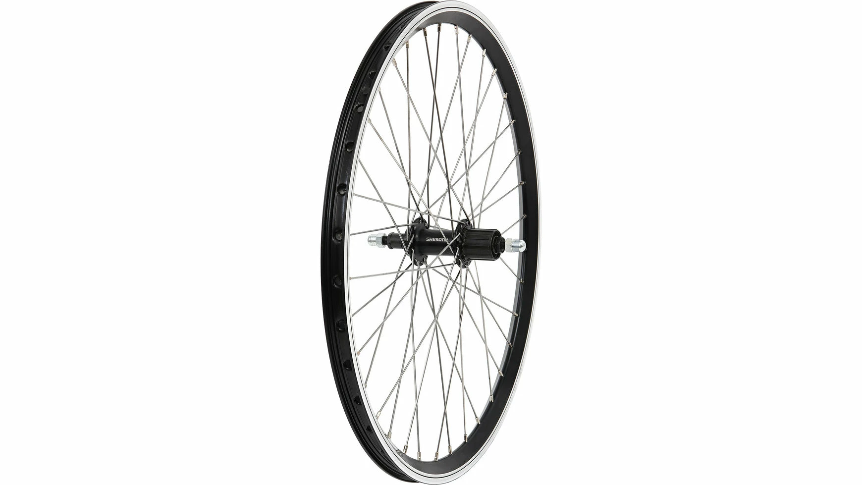 24 Zoll Hinterrad mit Dynamic 3 Felge und Shimano FH TY 500 7f Nabe, sowie 2,0 mm Niro Speichen mit 36 Loch.