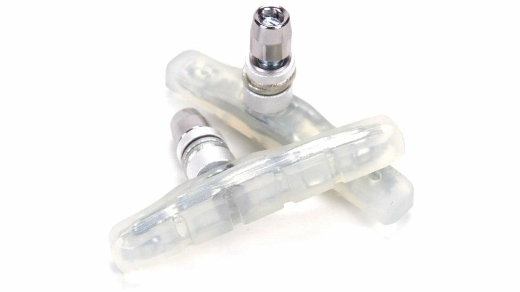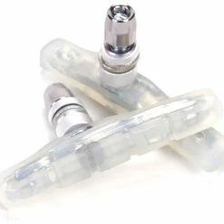 Die Odyssey BMX “A-Brake” Bremsschuhe besitzen ein Schraubgewinde, sind lang und besitzen eine ihrer Farbe entsprechende Gummimischung mit unterschiedlichem Härtegrad. Die Farbe “Clear” weist einen weicheren Härtegrad auf, als die Variante “Black” (normaler Härtegrad).