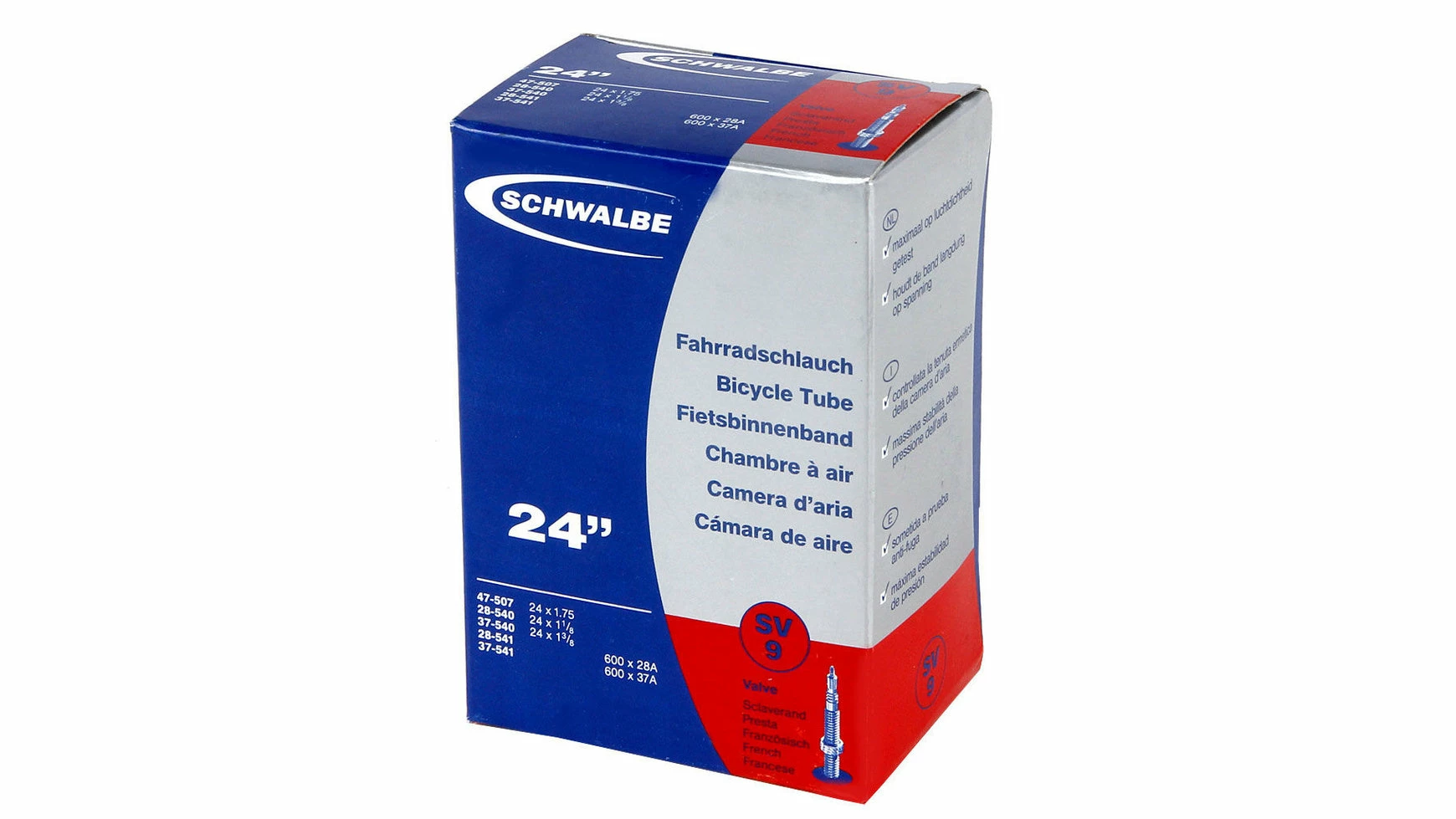 Schlauch für 24 Zoll Kinder- und Liegeräder, sowie Anhänger. Passend zu Reifen der Größen 47-507, 28- bis 37-540, 28- bis 37-541.