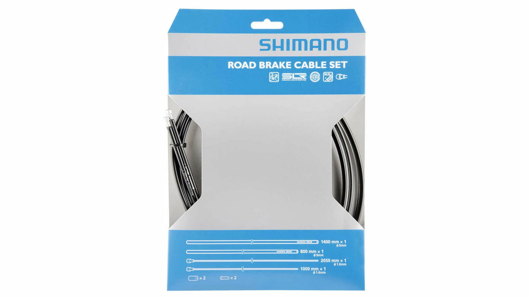 Shimano Bremszug-Set mit PFTE Beschichtung für eine reibungsarme Bremsfunktion. Steifes Futter, das auch unter Extrembedingungen formstabil bleibt. Folgt der Lenkerkontur.