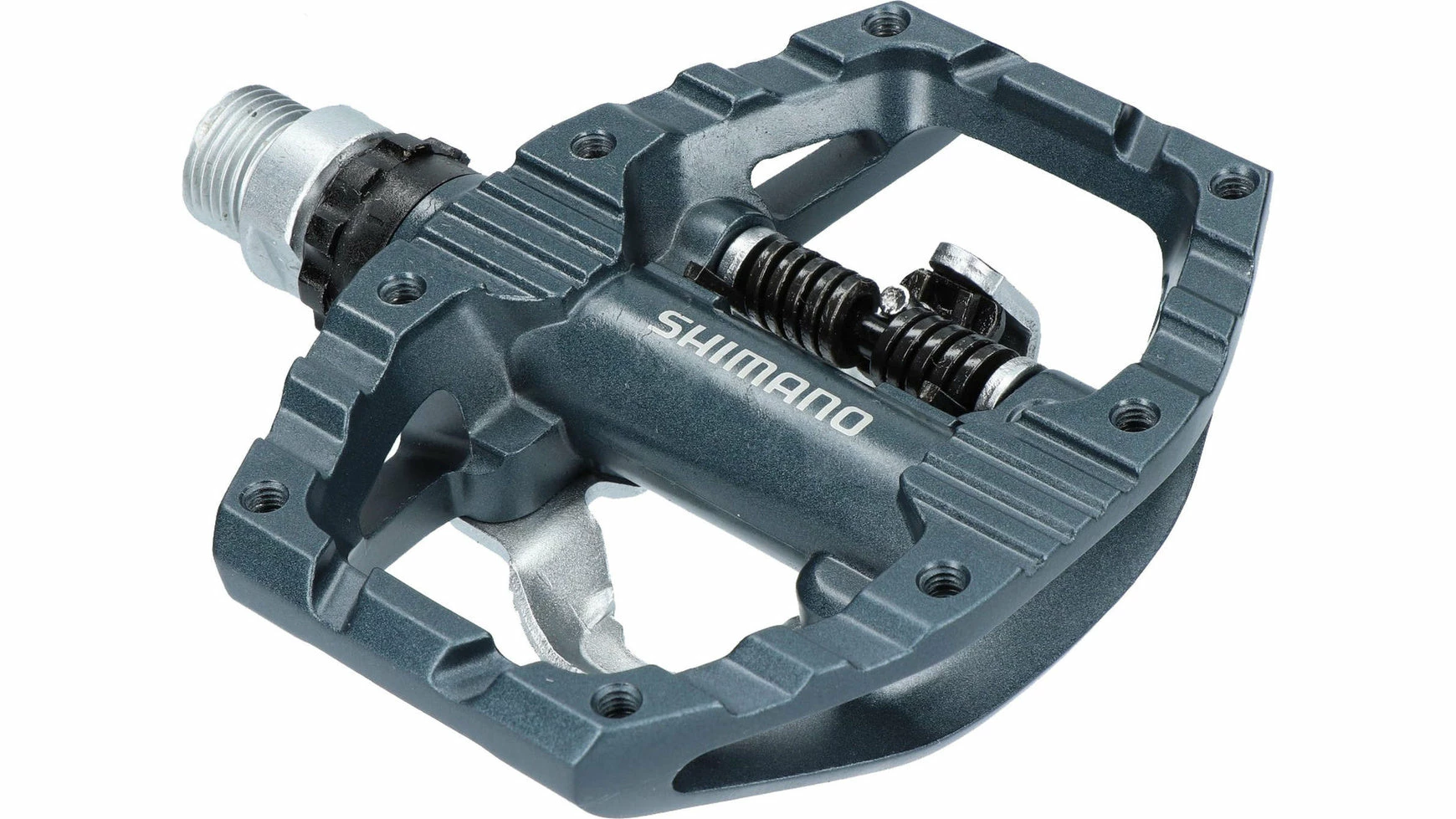 Flach und griffig auf der einen Seite und SPD-Klicksystem auf der anderen. Das Shimano PD-EH500 Duopedal ist die Alternative für alle, die ein reines SPD-Pedal zu sehr einschränkt. Die beliebte Shimano Light-Action-Technologie sorgt zudem für eine angenehm leichtes ein- und ausklicken.